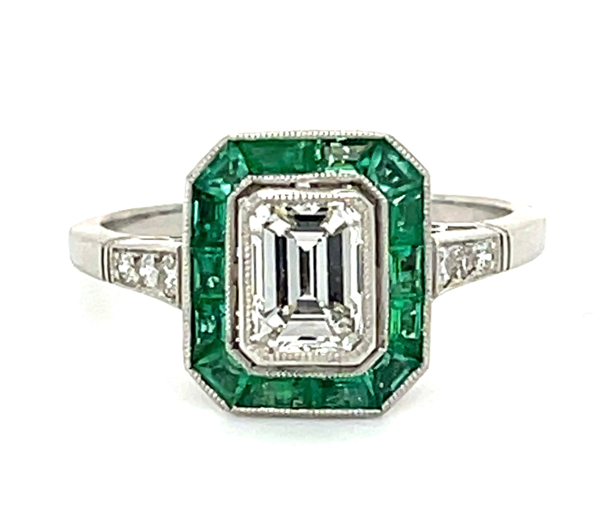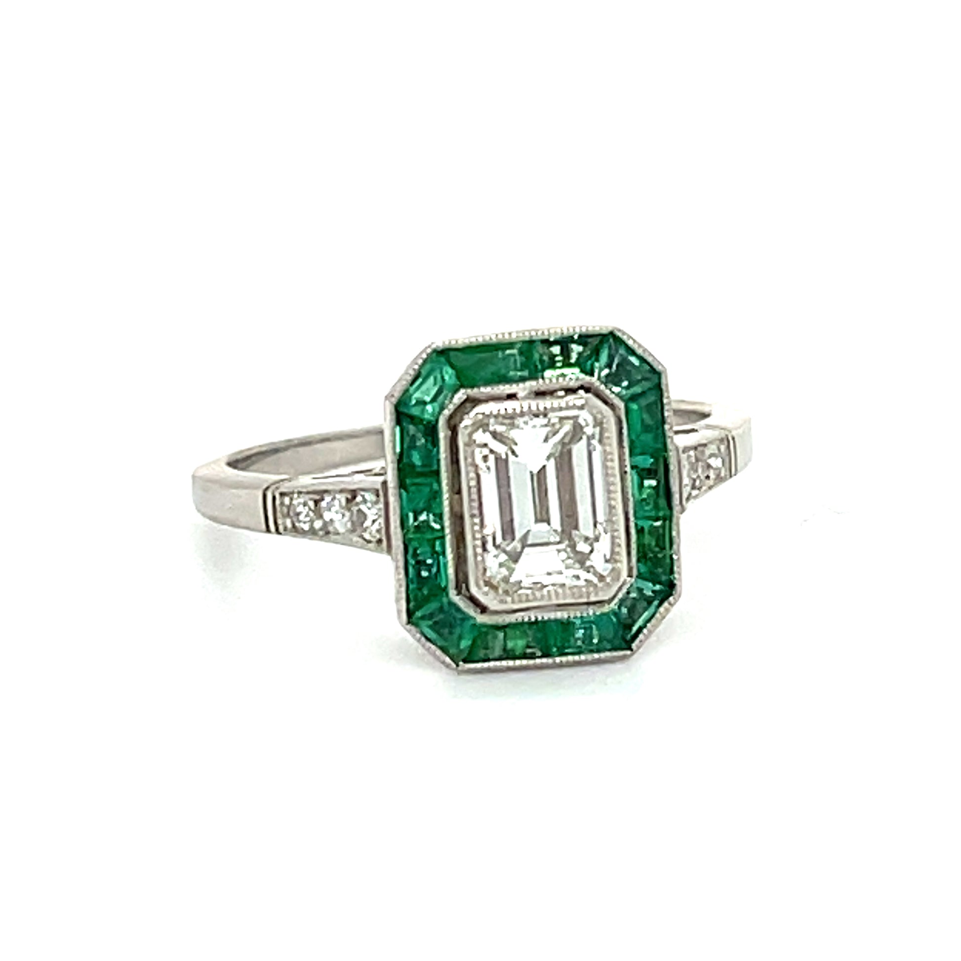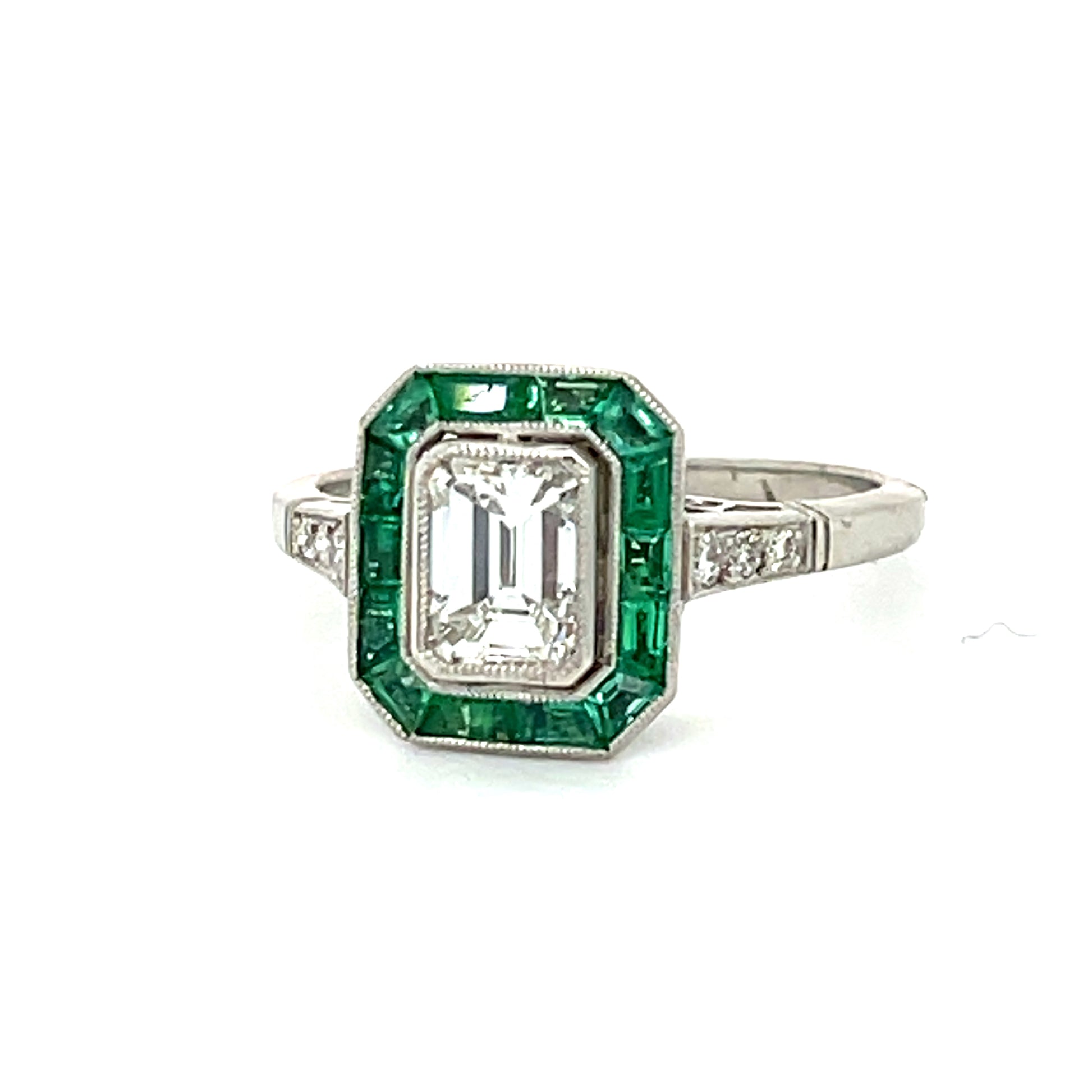 1ct Emerald Cut Diamond GIA I VVS2 Platinum Handmade & Inspired Ring 1ct Calibre Emeralds .12ct SD
