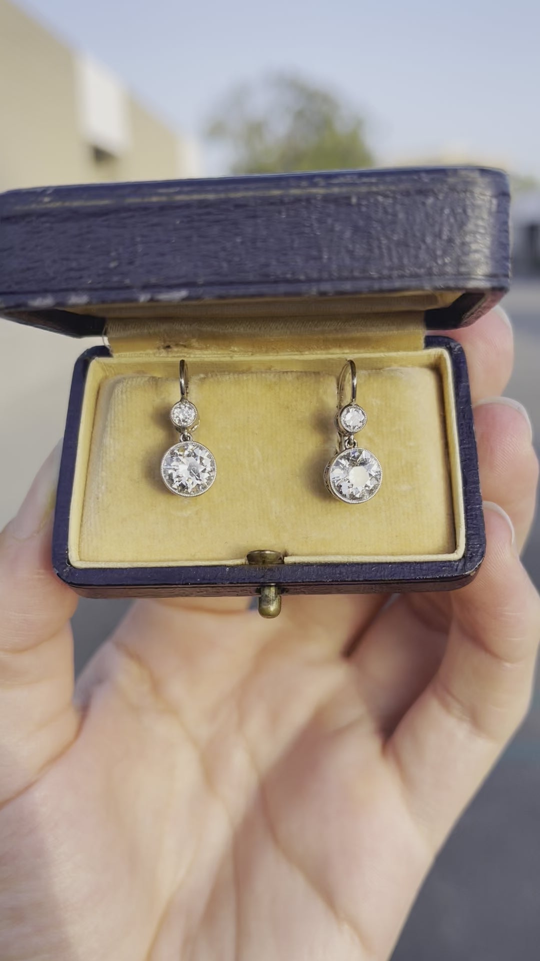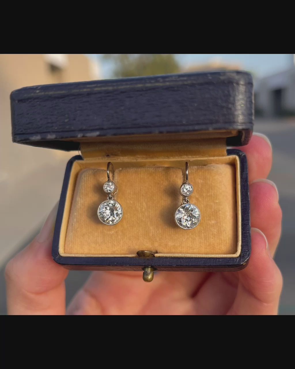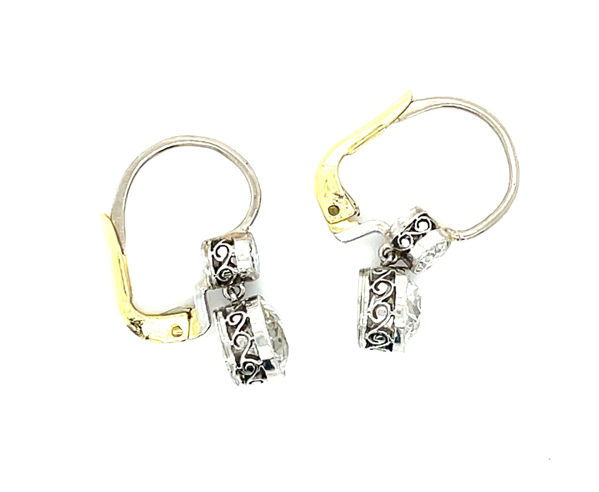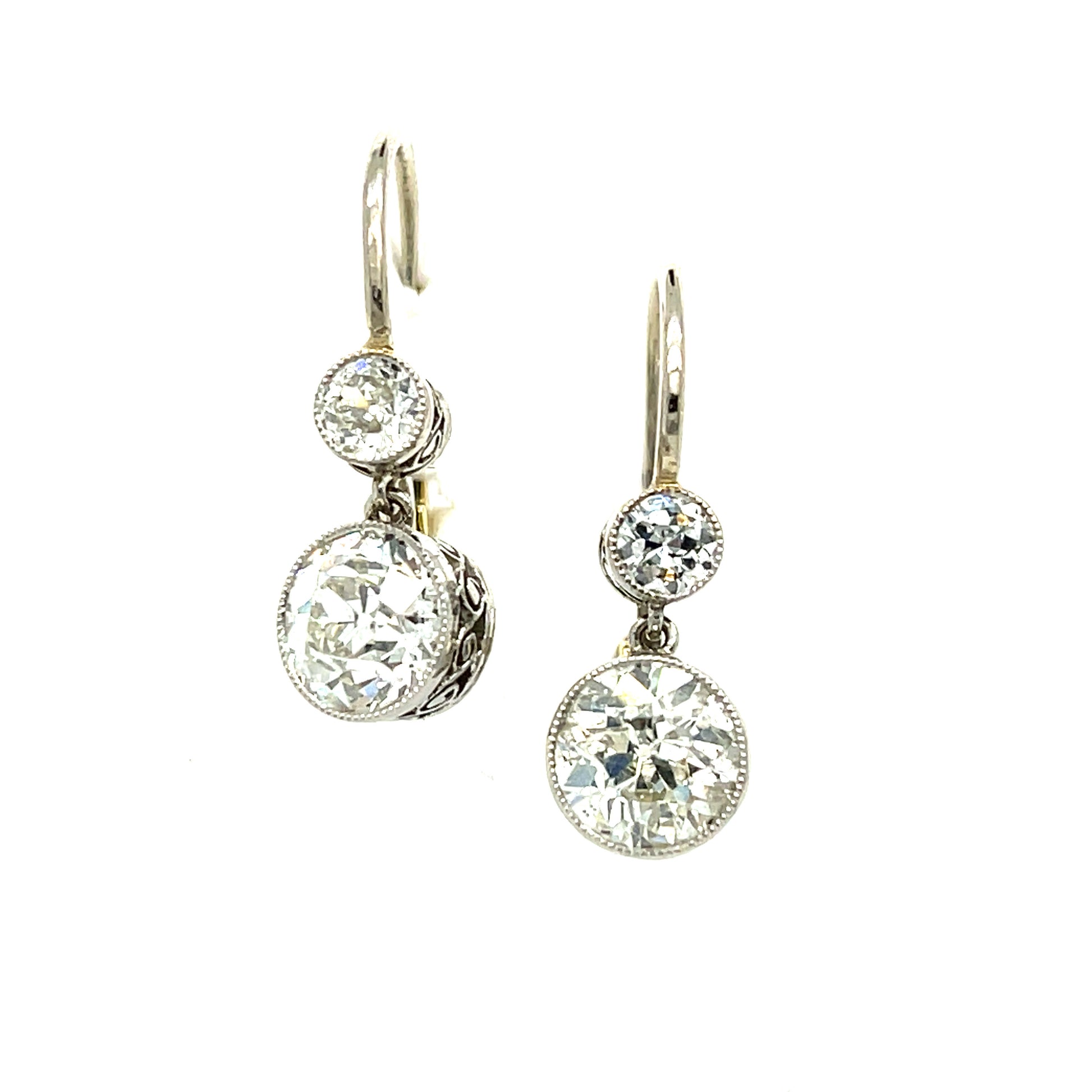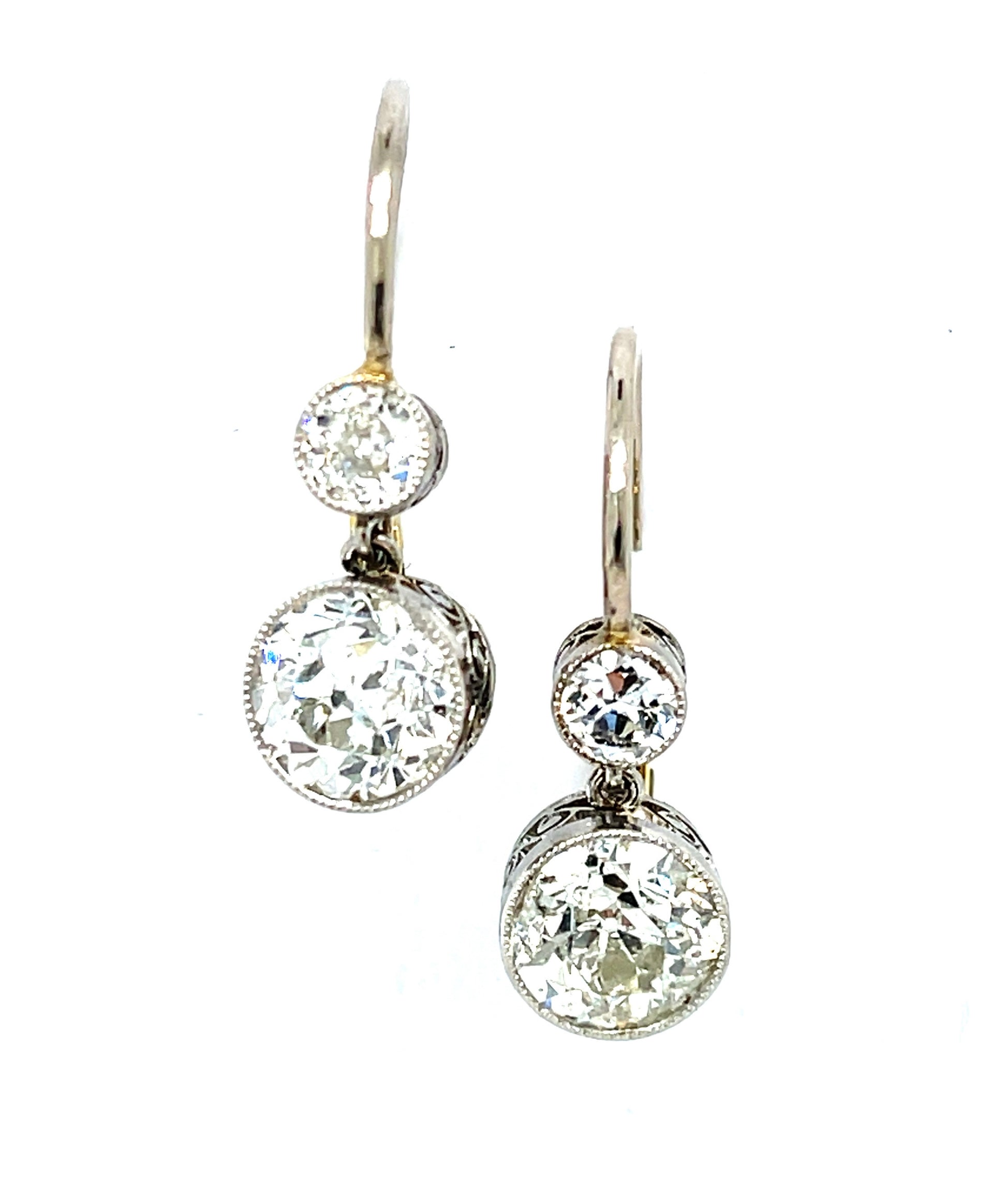 2.22ct Old European Cut Diamonds (Two Centers) .30ct (Two SD) Platinum over 18KY Gold Drop Earrings