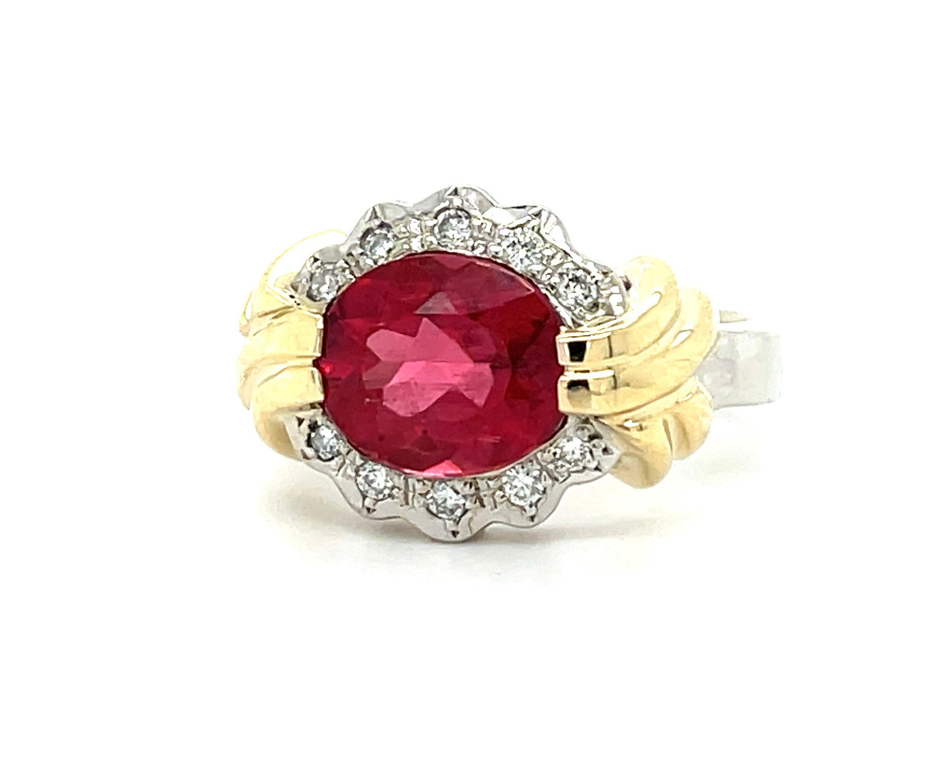 2.38ct Rubellite Tourmaline .30ct Diamonds 18K Two Tone Estate Ring (Circa 1980s)