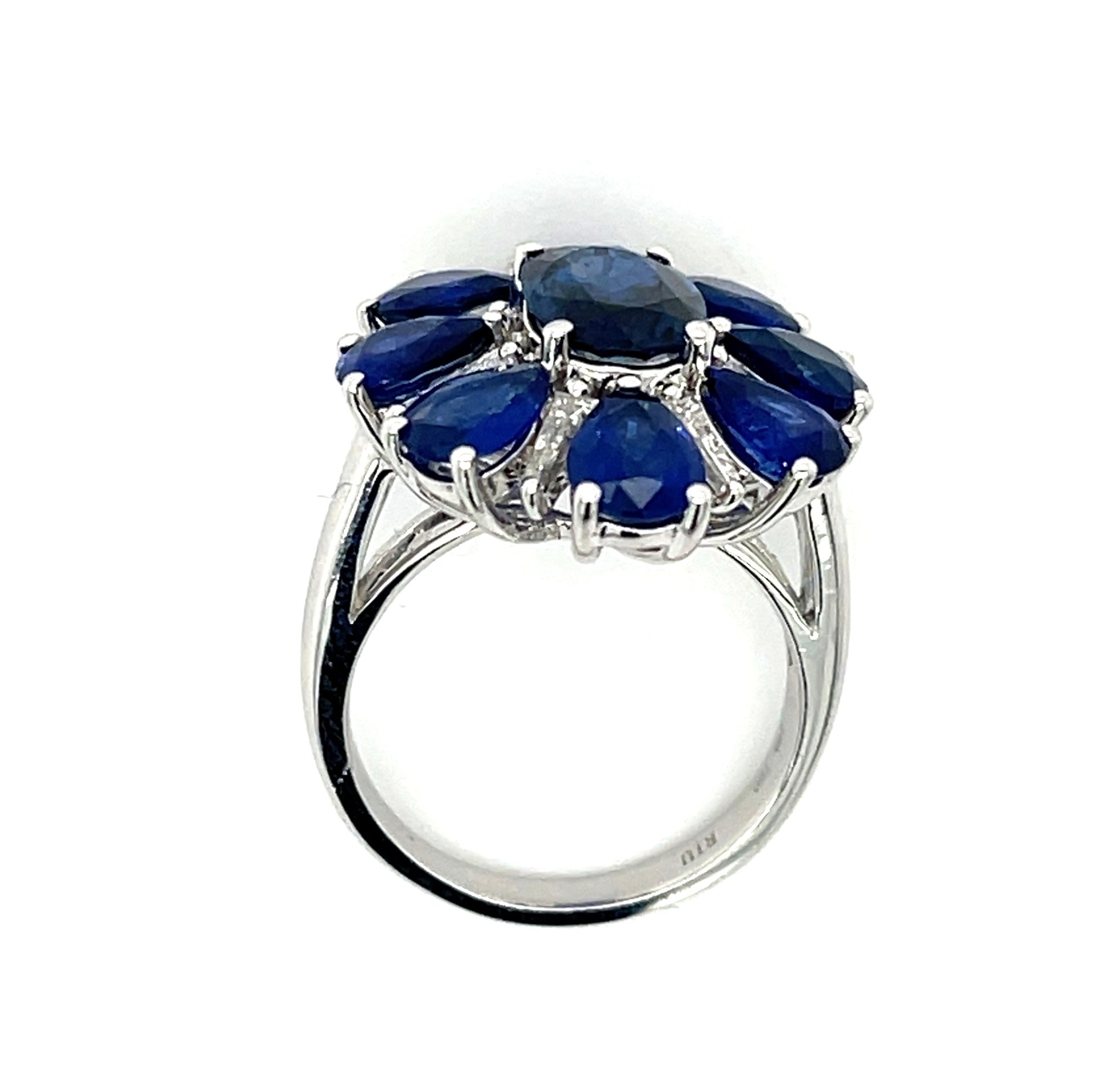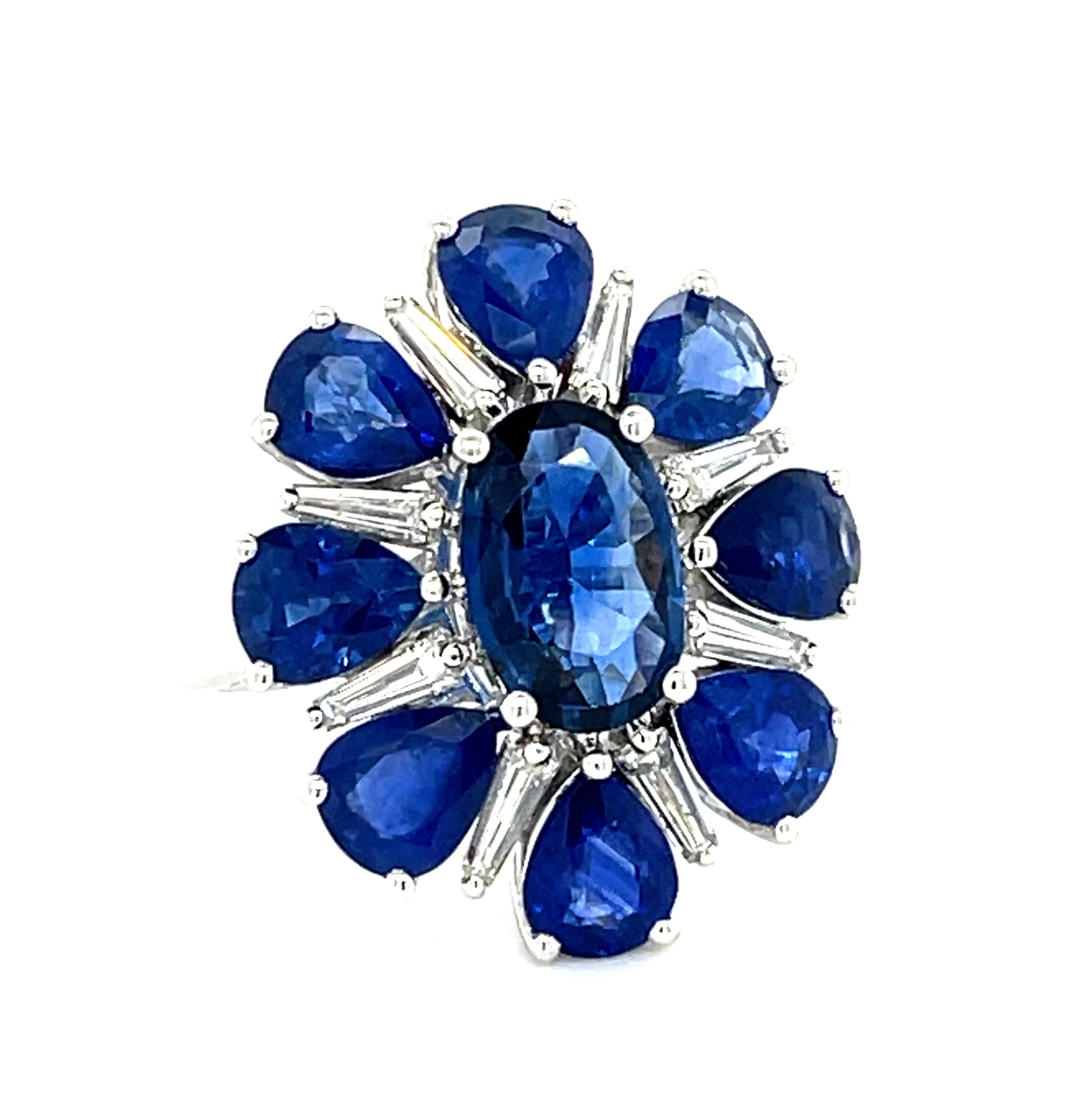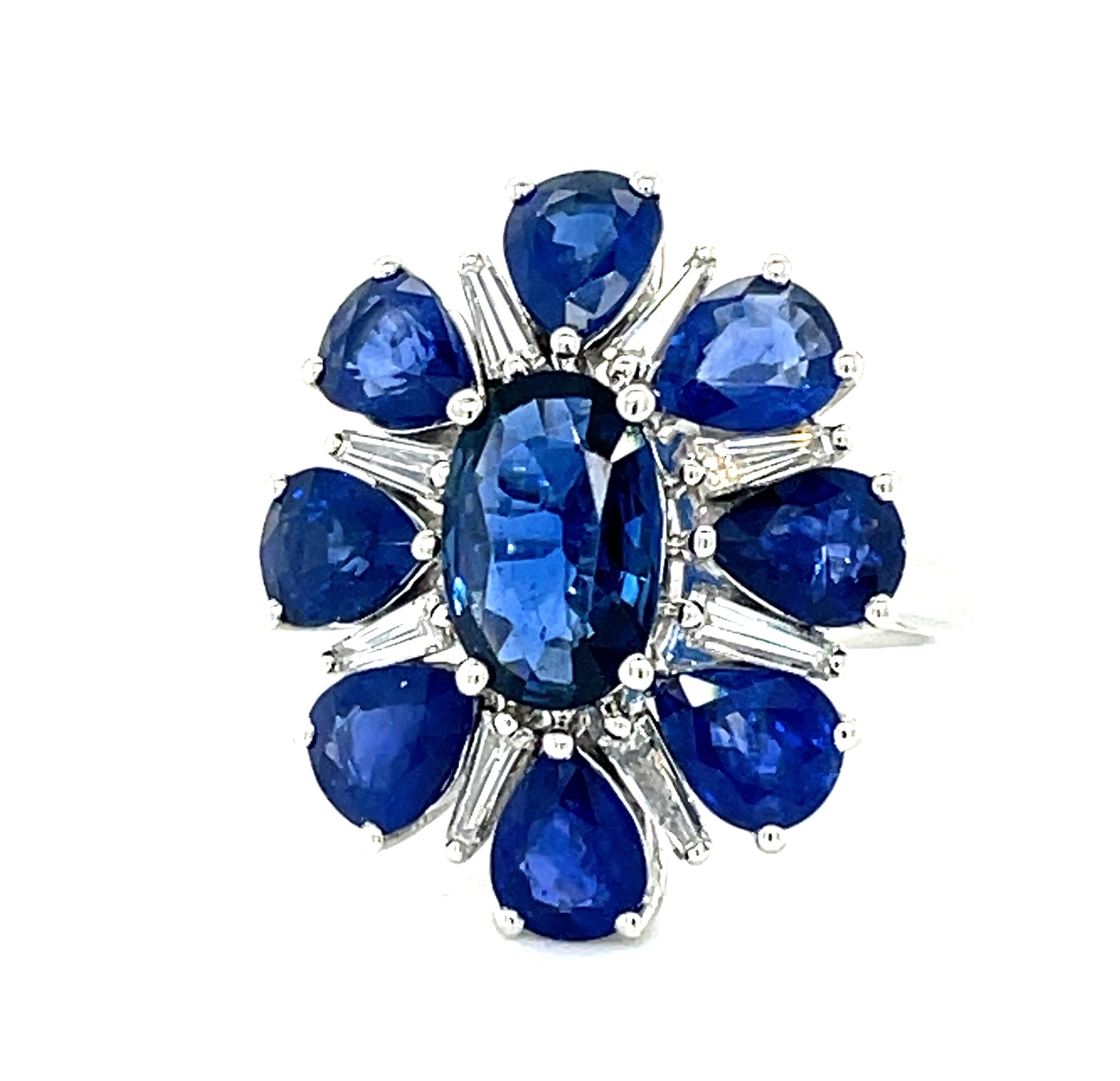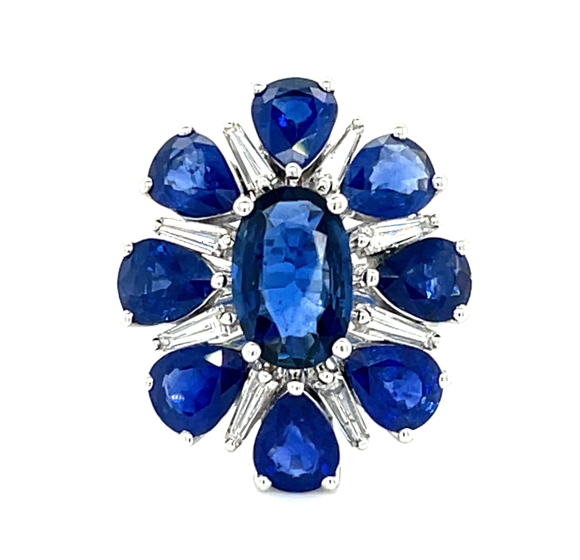 2.50ct Oval Sapphire Center 18KW Estate Handmade Ring 6ct Side Pear Shape Sapphires .68ct Baguette Diamonds
