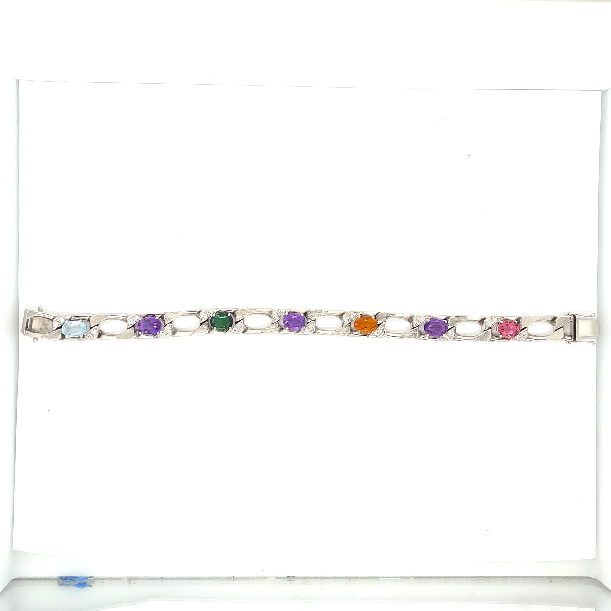 8.56ct Green Tourmaline, Citrine & Amethyst 14KW Estate Bracelet 1ct Diamonds