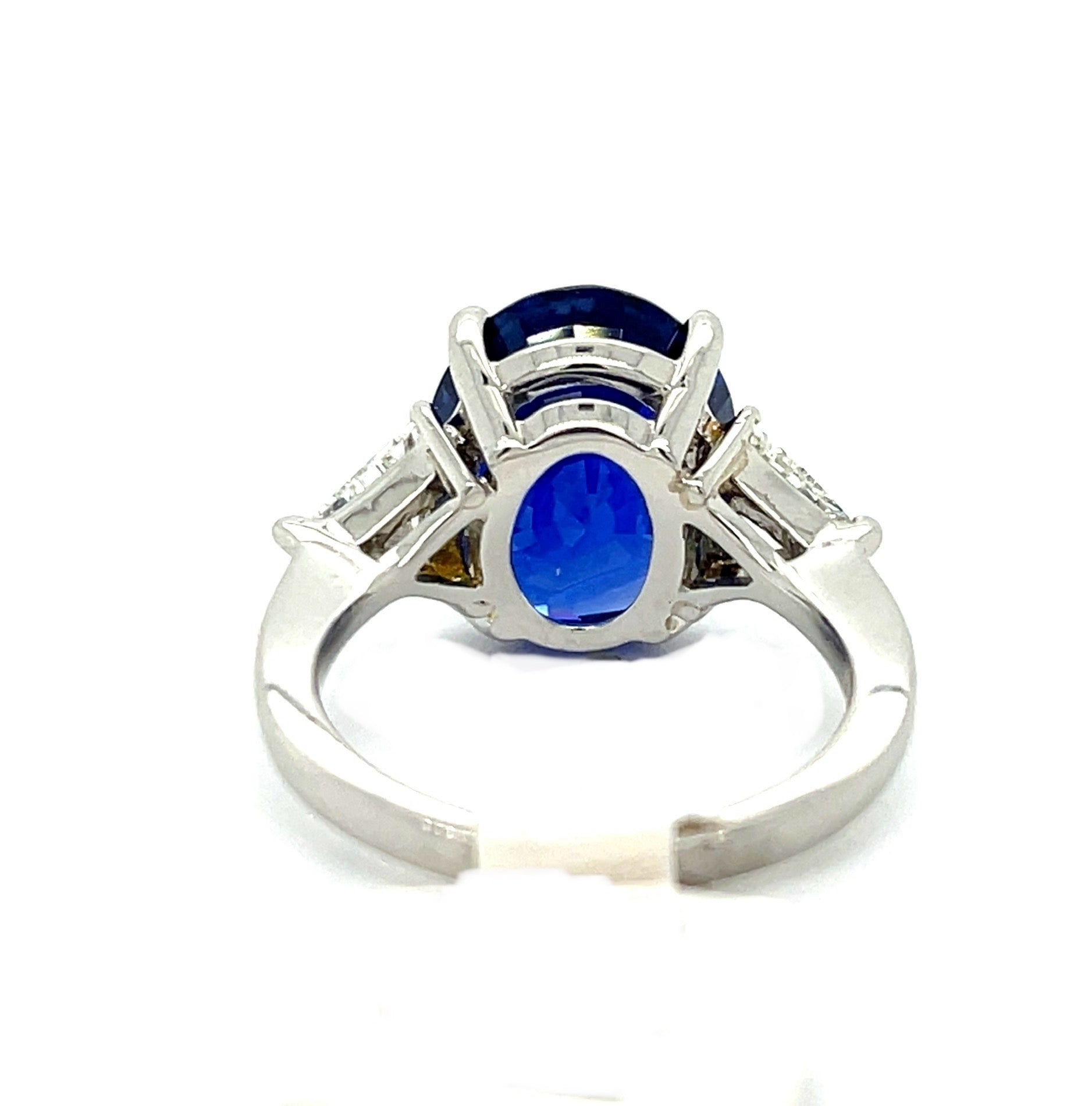 9.96ct Heated Blue Sapphire Oval Shape Platinum Ring .60ct Trillion Cut Diamonds