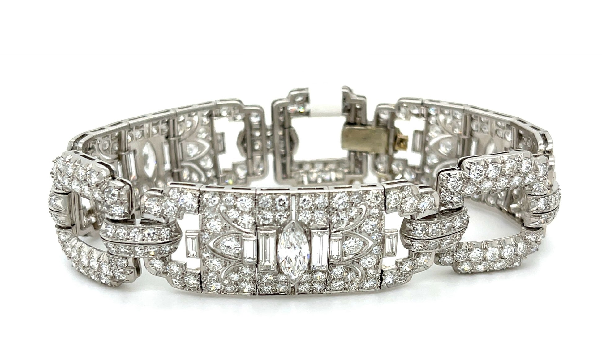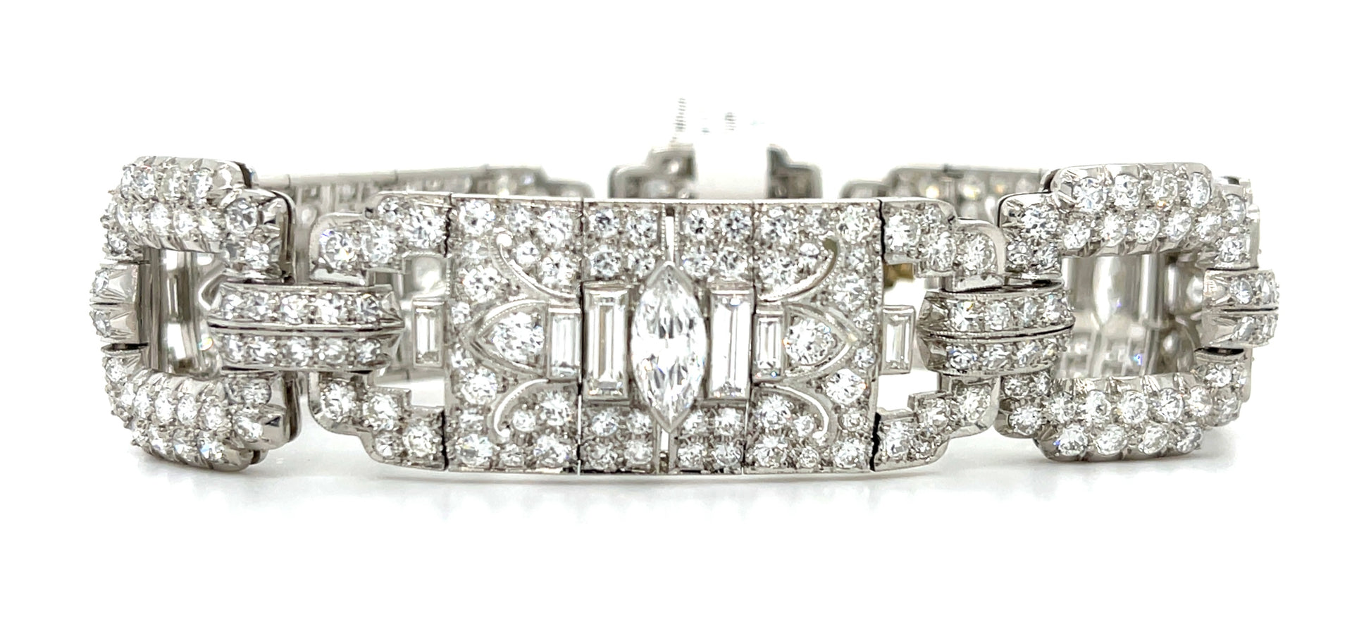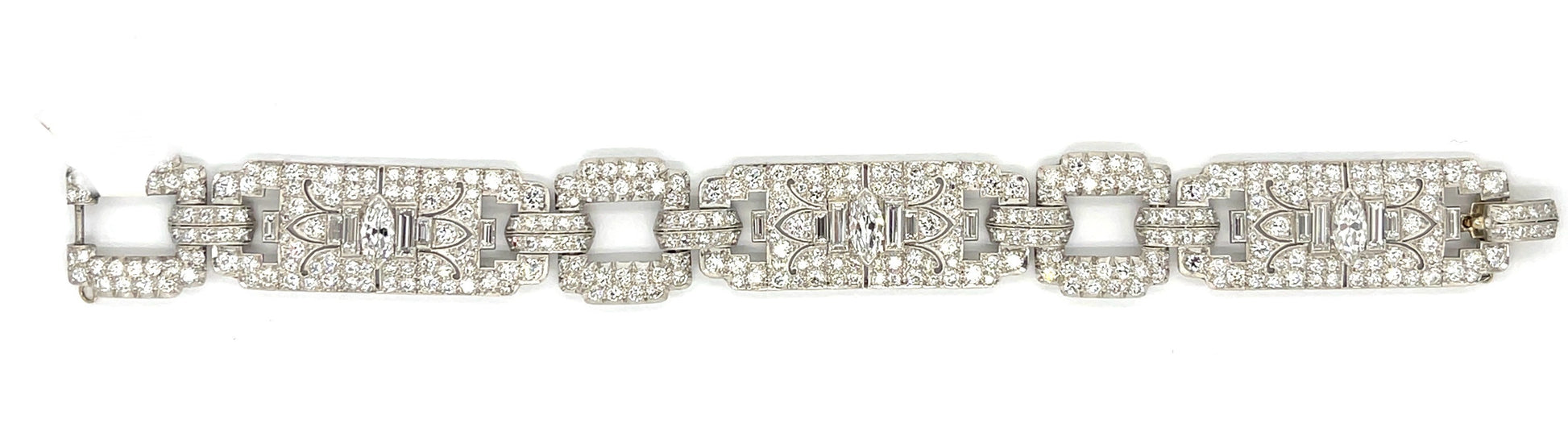 Art Deco 1.40ct Center Marquise Diamond Bracelet Platinum (Vintage Circa 1930s) 15ct Side Diamonds