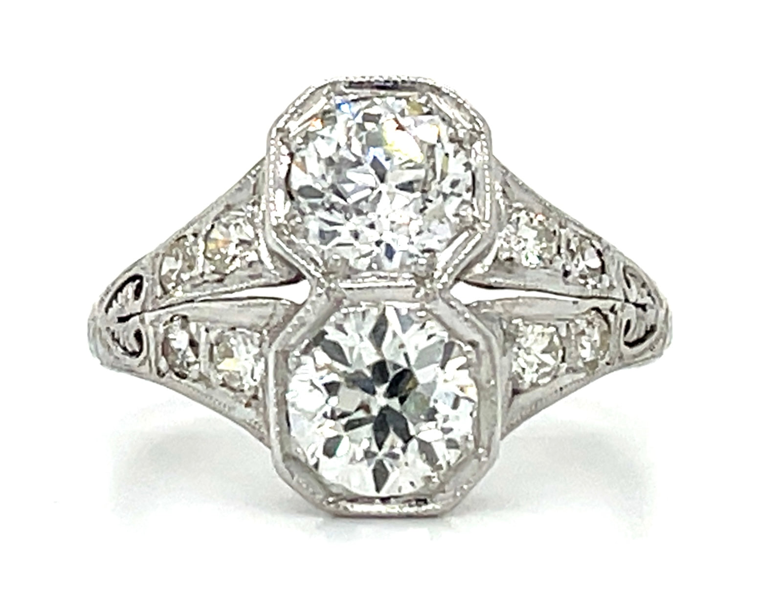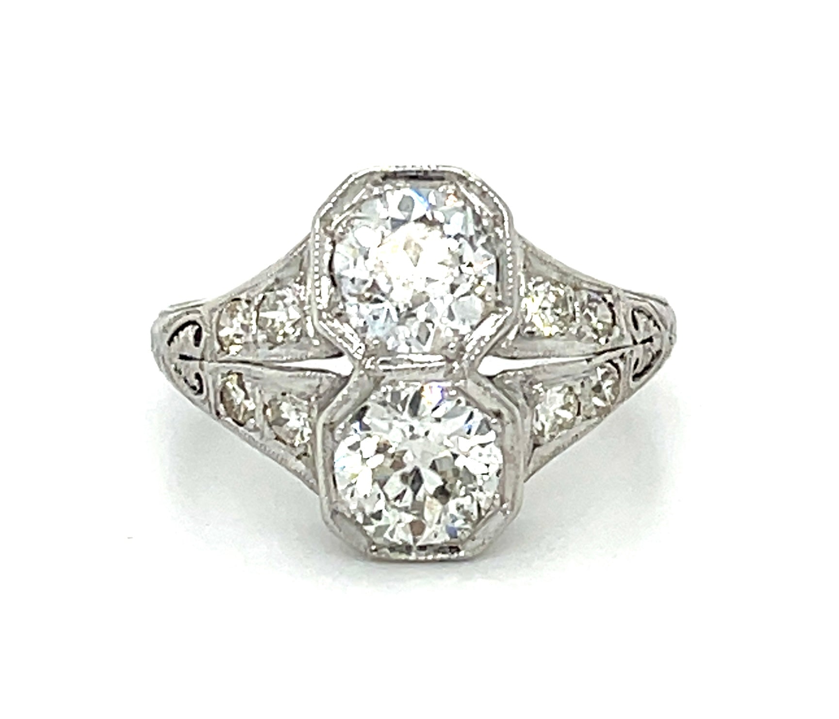 Art Deco 1.40ct Old European Cut Diamonds Platinum Antique Two Stone Ring (Circa 1920s)
