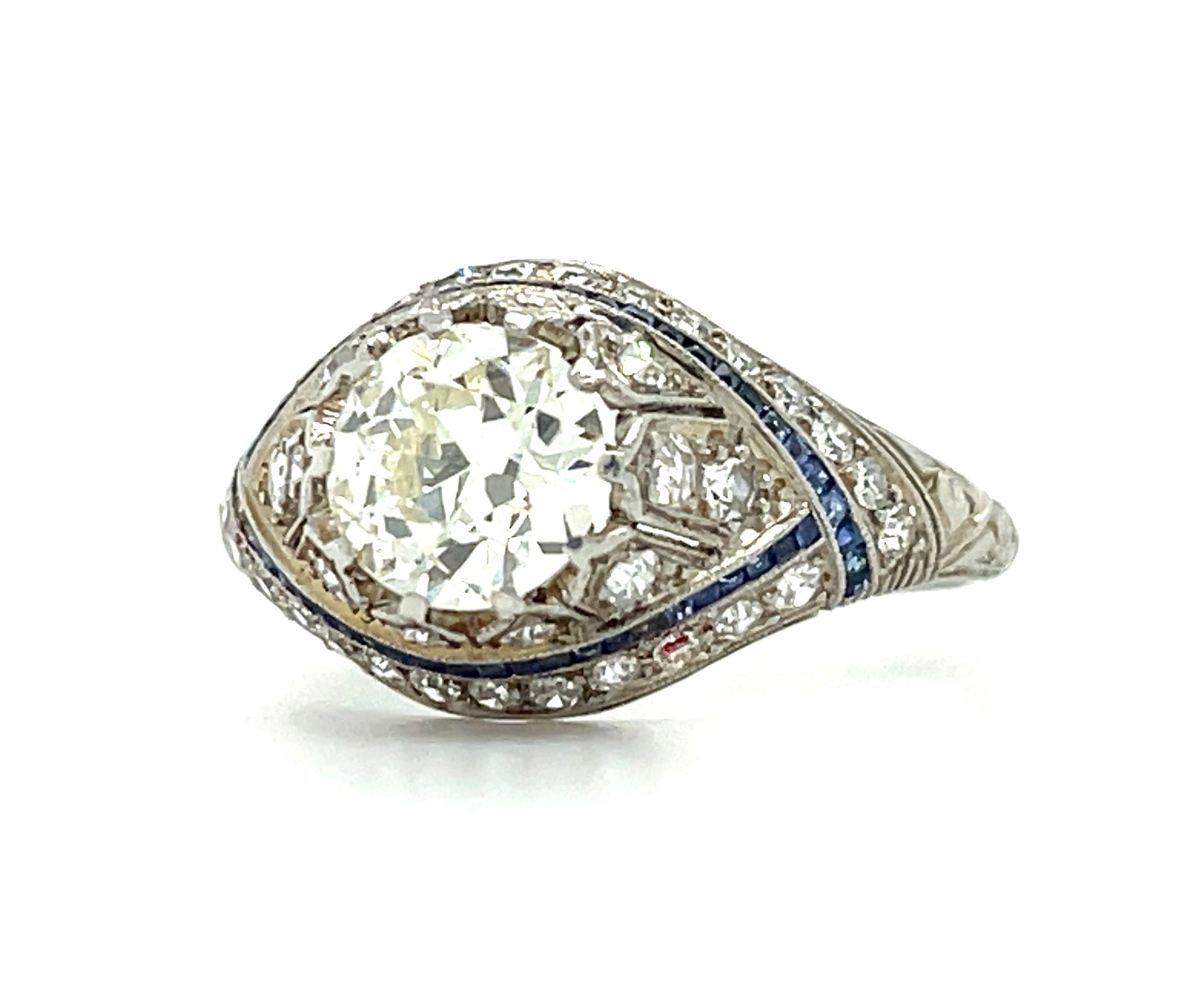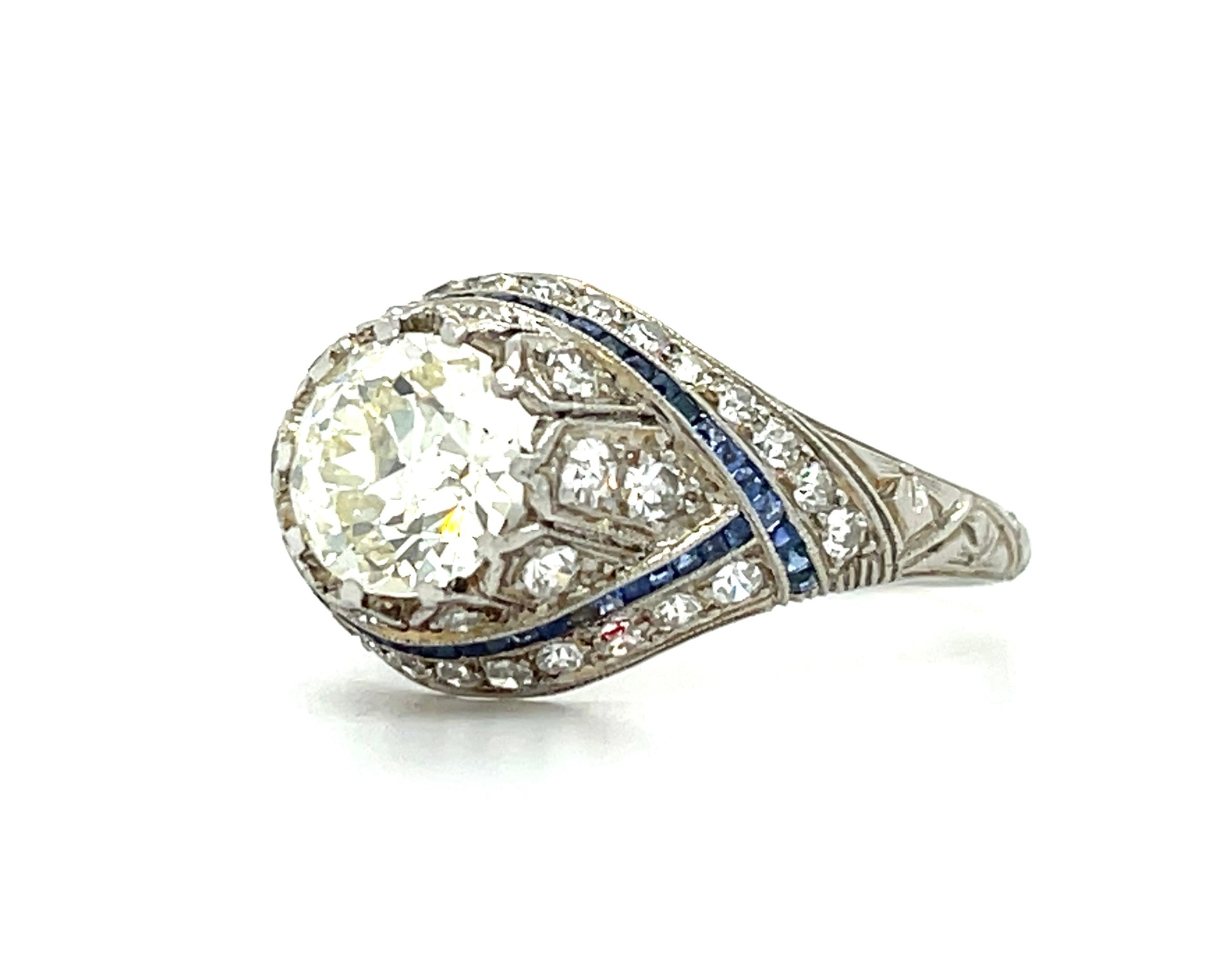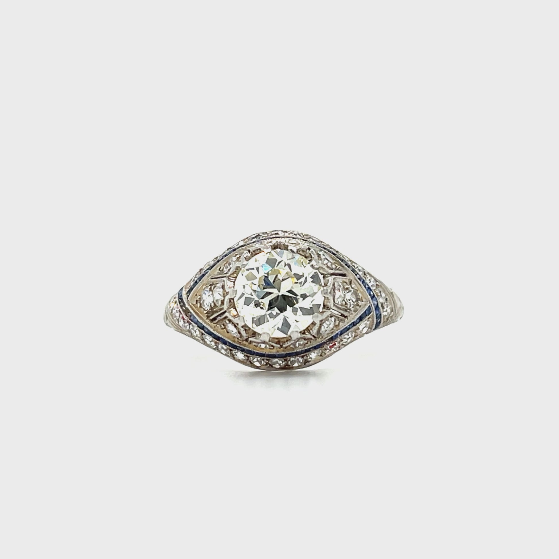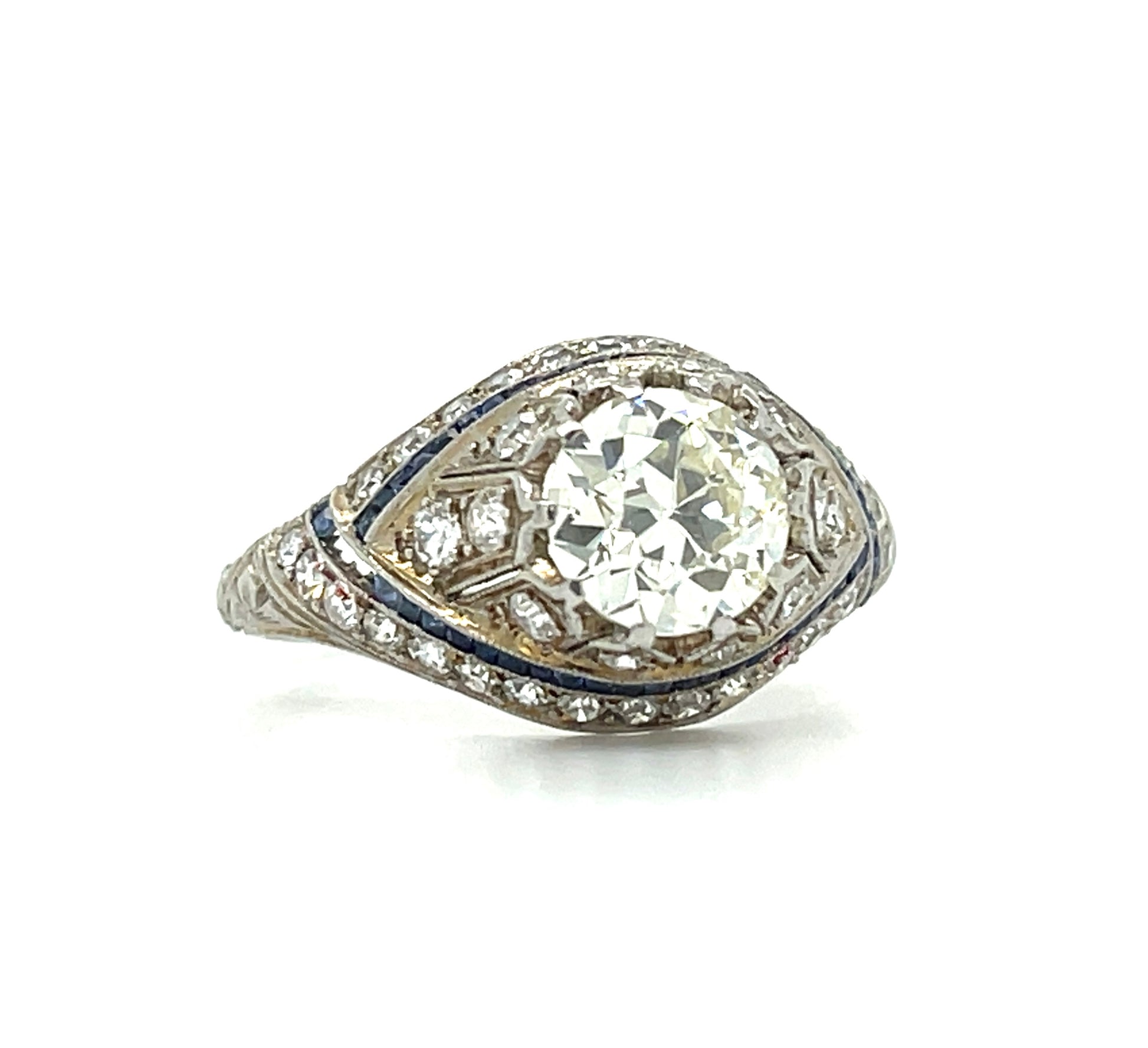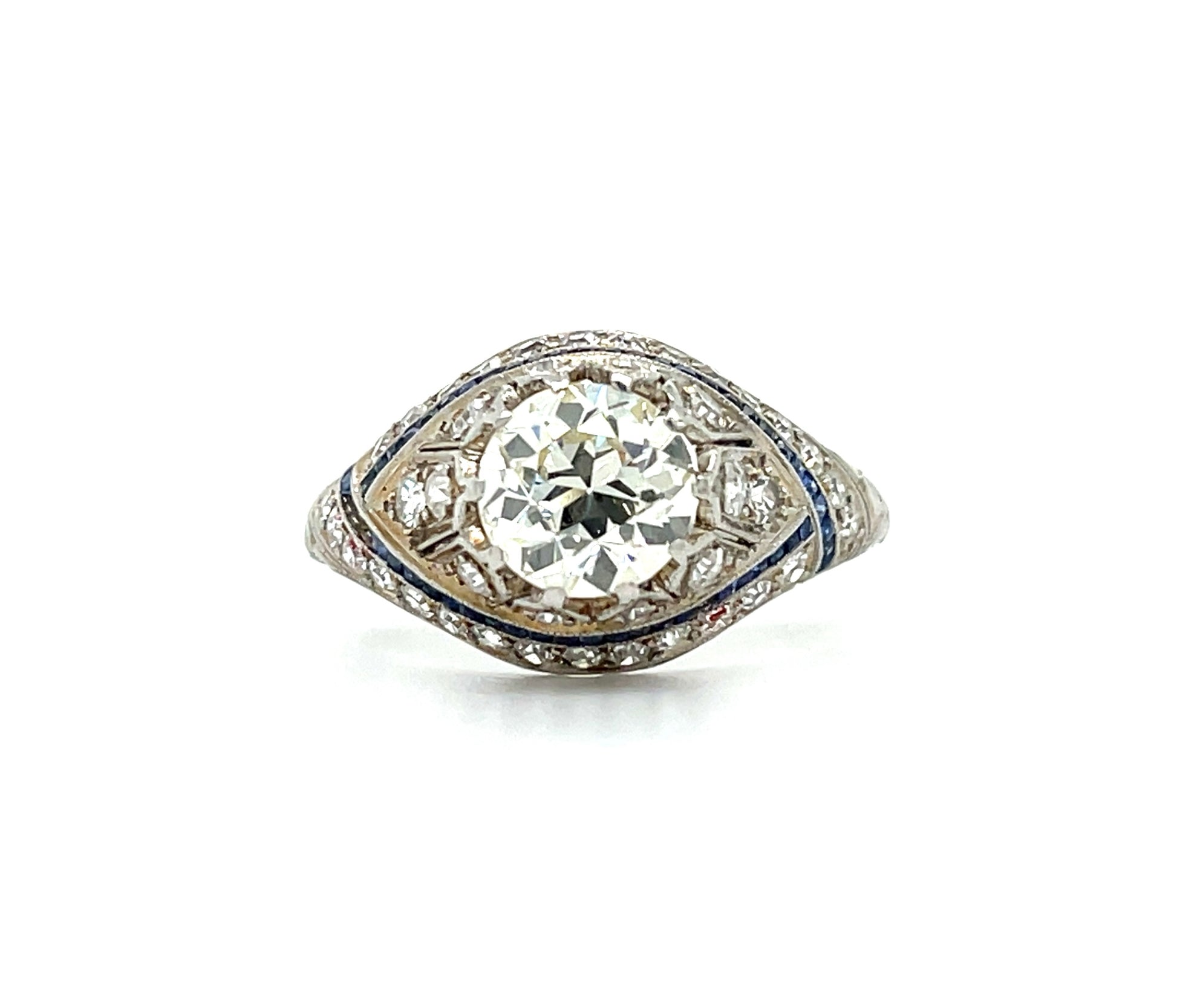Art Deco (Circa 1920s) 1.25ct Old European Cut Diamond .64ct SD Platinum Antique Ring