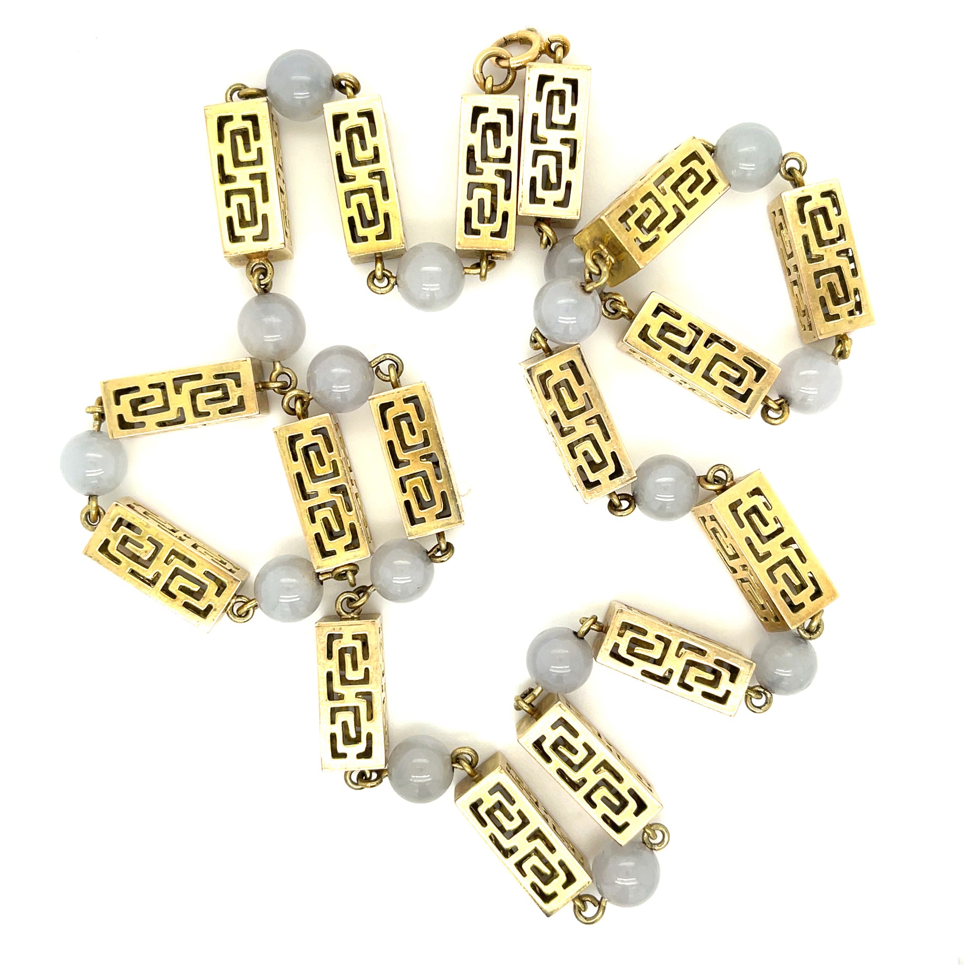 Bluish-Grey Jade 14KY Vintage Necklace (Circa 1960s)