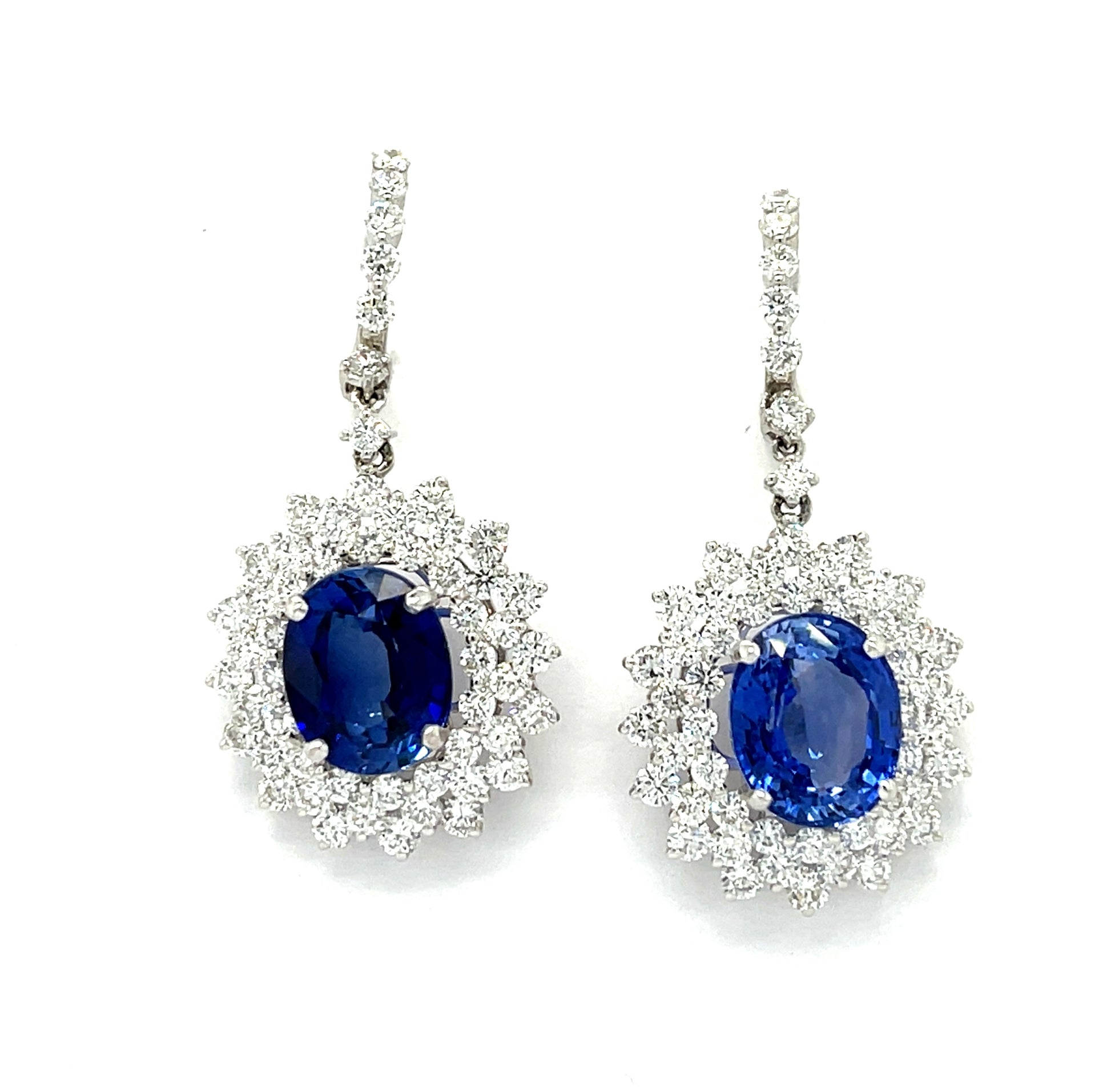 Sapphire 18KW Drop Earrings 3.85ct 1st Sapphire 4.25ct 2nd Sapphire 3.75ct Diamonds